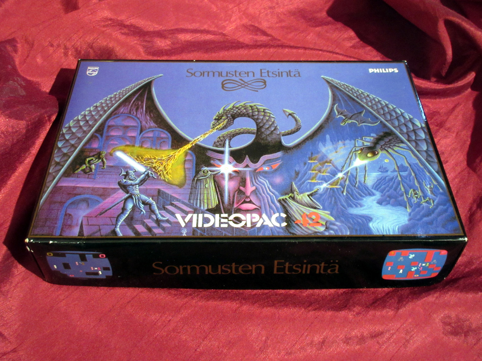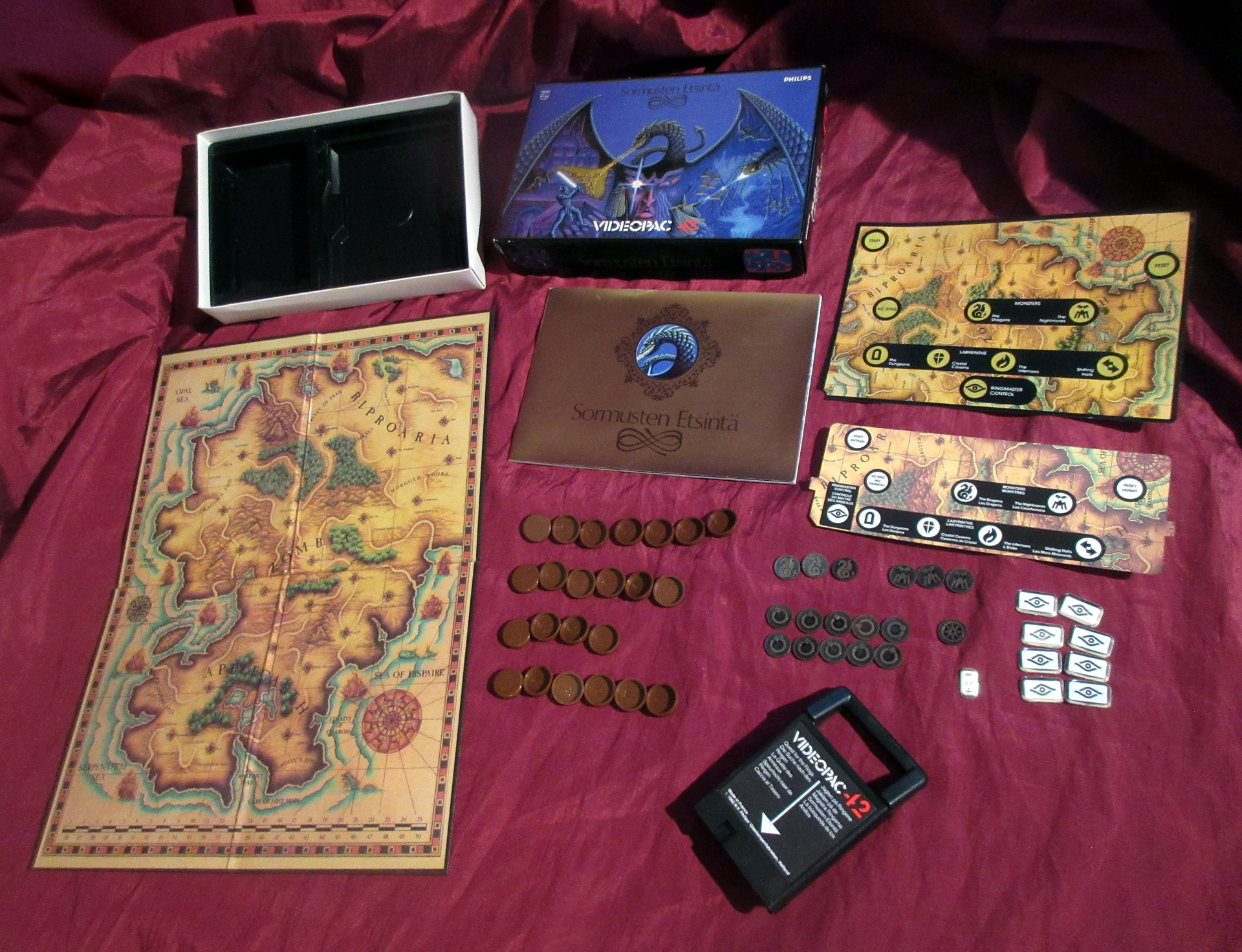 Mielenkiintoisin Videopac-peleistäni on #42 Sormusten Etsintä (1982) isossa laatikossa — roolipelin, videopelin ja lautapelin yhdistelmä!