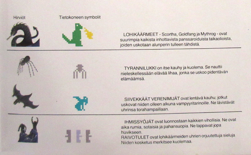 "Sormustenvaltias lähettää pelottavat kätyrinsä vartioimaan sormuksia - kavalat Raivotulet ja Ihmissyöjät - kauhistuttavan Tyrannilukin - ilkeät lentävät Verenimijät - ja inhottavat tultasyöksevät Lohikäärmeet: Scortha, Goldfang ja Mythrog."
