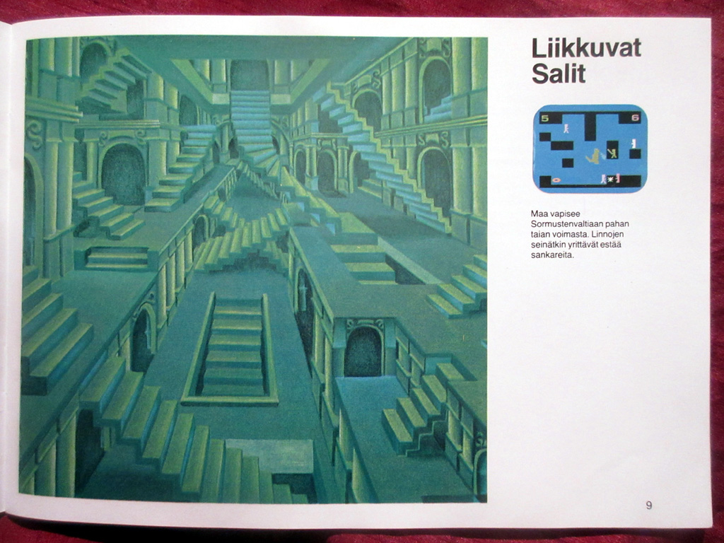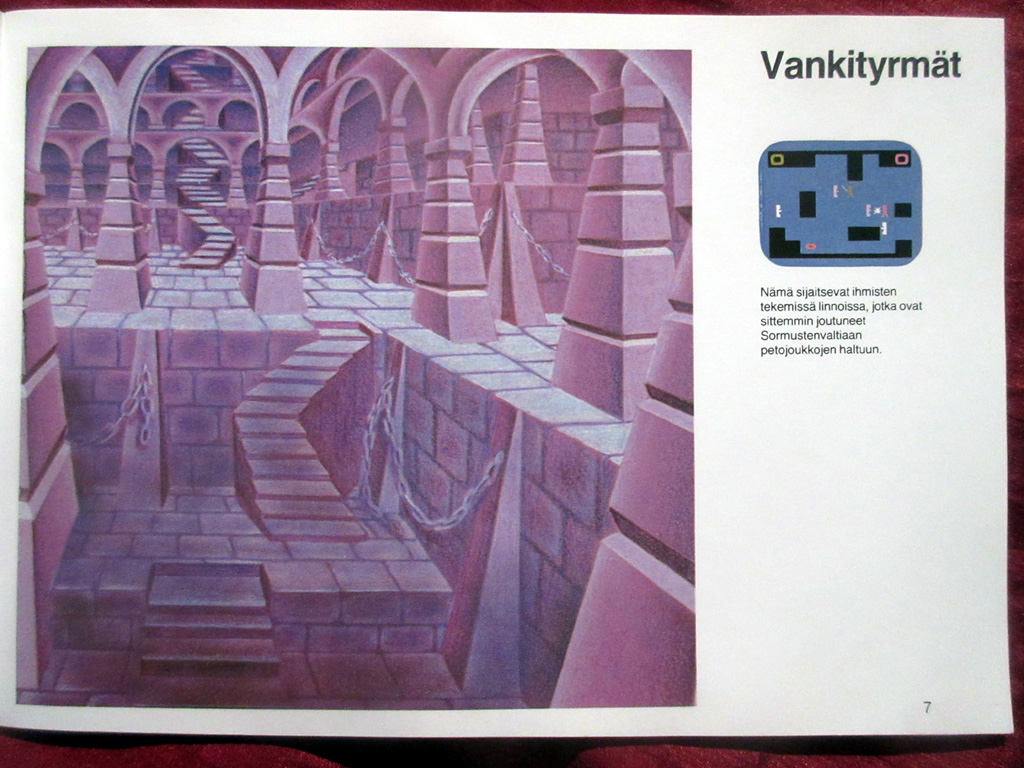 Escheriaanisia holvastoja ja tyrmiä pelin manuaalin kuvituksissa.